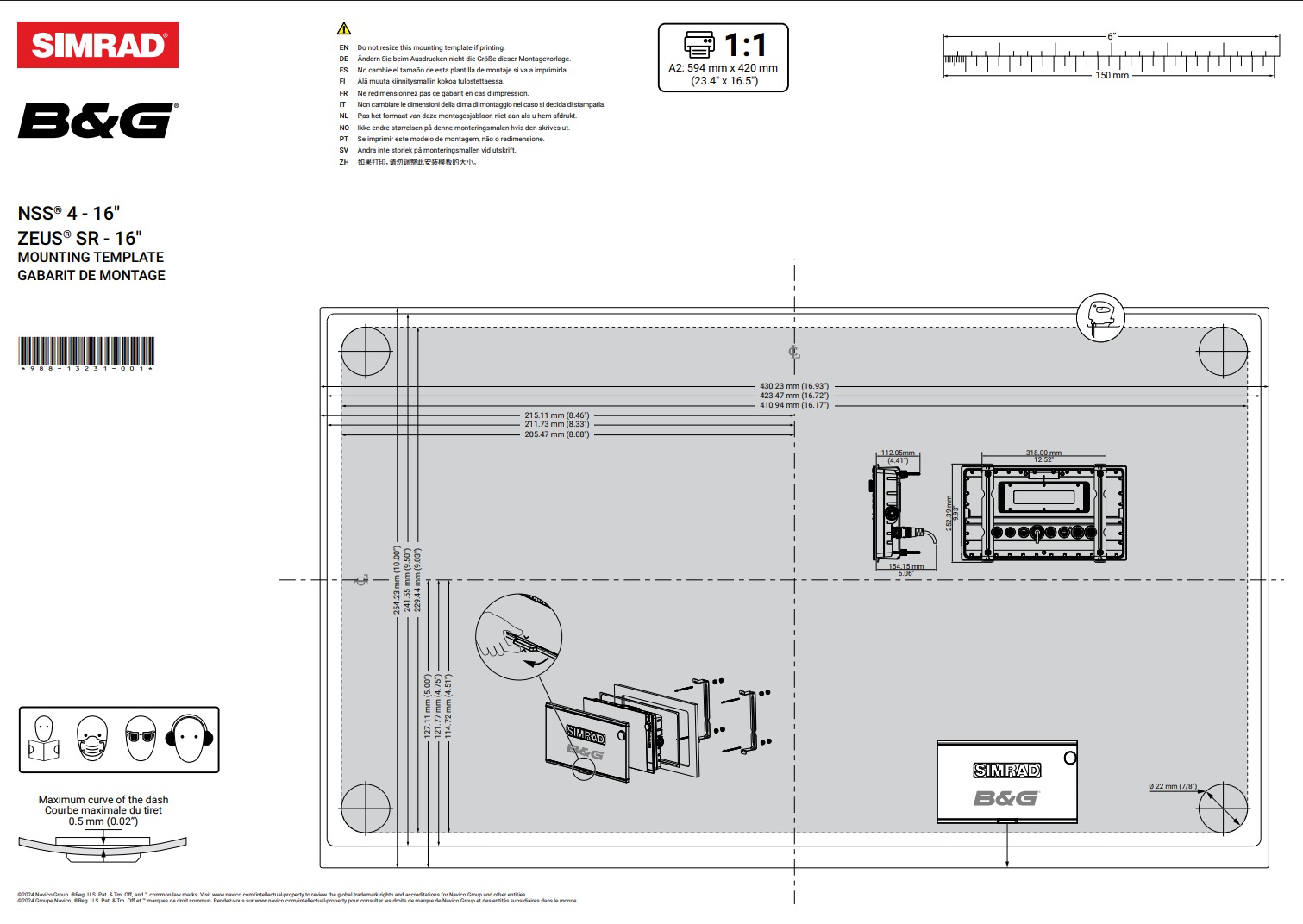 Ölçüler: G x Y x DYalnızca ekran: 423,5 mm x 241,6 mm x 88,6 mm (16,67″ x 9,51″ x 3,49″) Braket ile birlikte: 453,4 mm x 266,4 mm x 88,6 mm (17,85″ x 10,49″ x 3,49″)